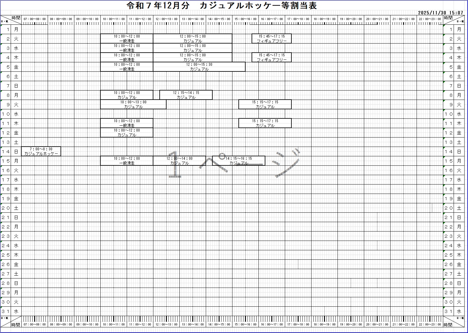 12月2日~15日までのカジュアルホッケー・一般滑走・フィギュアフリーの枠を設定し、