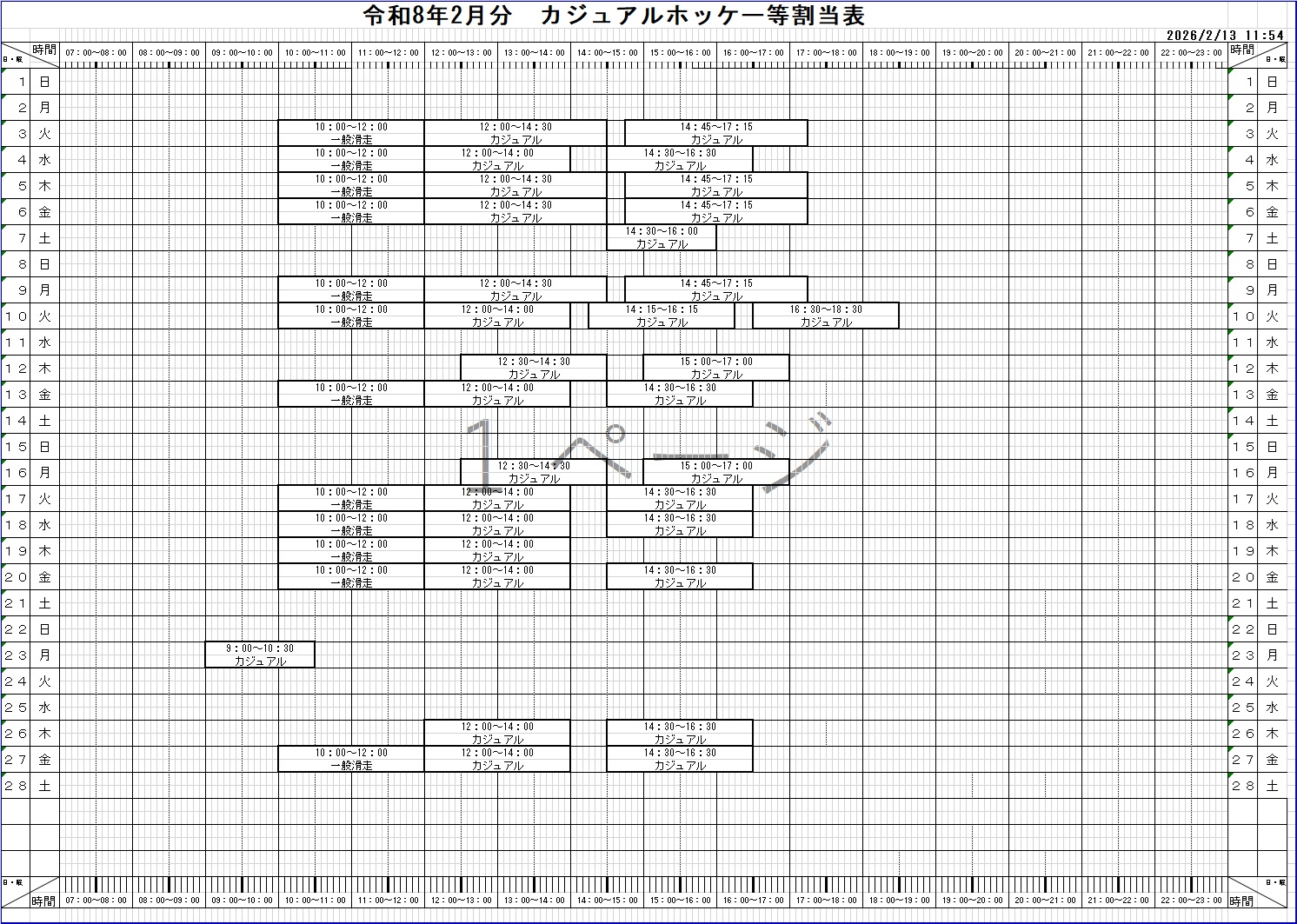 2月9日までの「2月カジュアルホッケー他の予定」について設定いたしました。