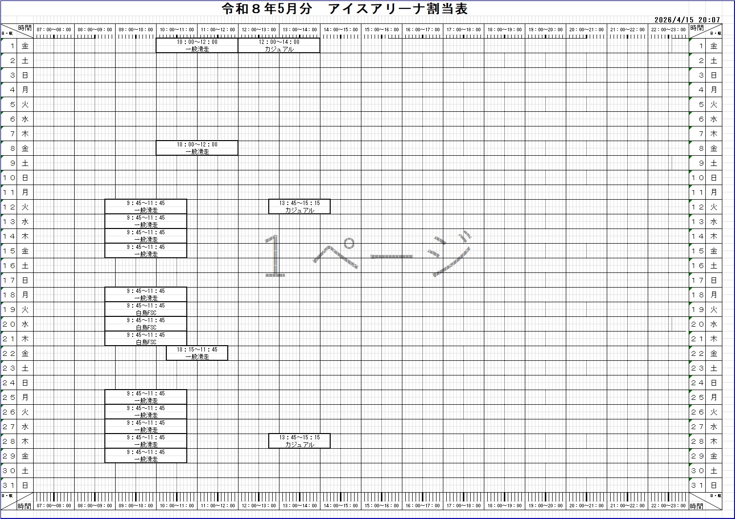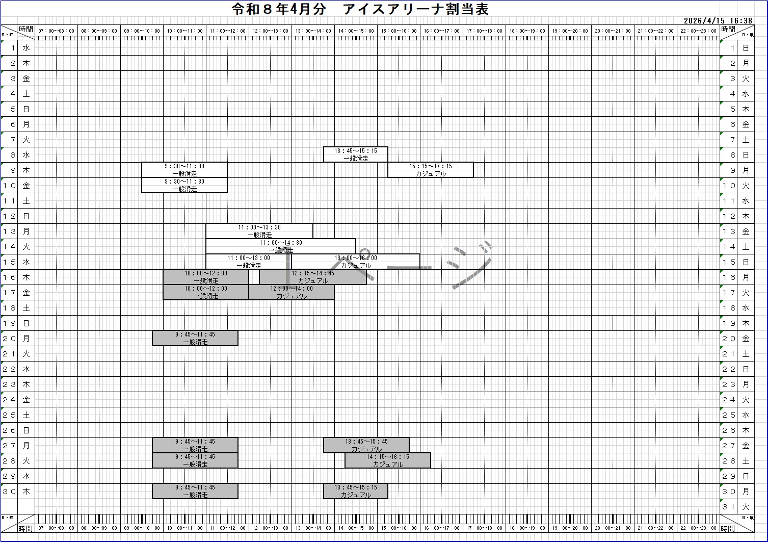 一部、急遽、団体使用となり変更がございます。ご了承ください。